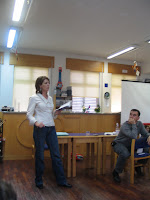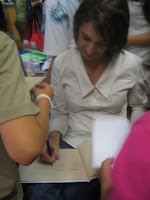 Os alunos do 6º A e do 6º B estão de PARABÉNS! Apresentaram um verdadeiro espectáculo musical e visual (acompanhado pela leitura integral de "O Sam e o Som" pela Ana André e Rita D.)! O Nuno (6º B) tocou o seu fagote, o Diogo (6º A) o seu violino e a Mariana (8º A) foi a nossa violoncelista de grande categoria!Todos os restantes alunos tocaram os mais variados instrumentos e recorreram também às vozes e às mãos para compor o ambiente musical! Ana Saldanha e Gémeo Luís manifestaram o seu grande prazer por terem visto um trabalho tão bonito e, durante mais de meia hora falaram, contaram, responderam às perguntas de muitos alunos que enchiam o CRE por completo. Ana Saldanha leu um excerto de "Escrito na parede" e fê-lo de tal forma que a plateia se fartou de rir deliciada! Gémeo Luís presentou os alunos com um postal da sua autoria. Como forma de testemunharmos a nossa gratidão, oferecemos um quadro a cada autor (2 trabalhos entre os muitos feitos pelos alunos) e flores, claro! Houve uma animada sessão de autógrafos e a promessa de futuros encontros! Aqui ficam algumas fotos do evento e da exposição que está na nossa Galeria de Exposições.