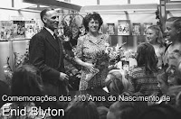 Sabes quem é ENID BLYTON? É essa mesmo: a autora de grandes aventuras, entre as quais destacamos "Os Cinco" e "Os Sete"! Em Agosto deste ano celebrou-se, por todo o mundo, o centésimo décimo aniversário do seu nascimento! Ela continua a ter muitos fãs e há vários Clubes de Fãs em diversos países, Portugal incluído. Se queres saber mais sobre esta genial escritora, consulta este site: